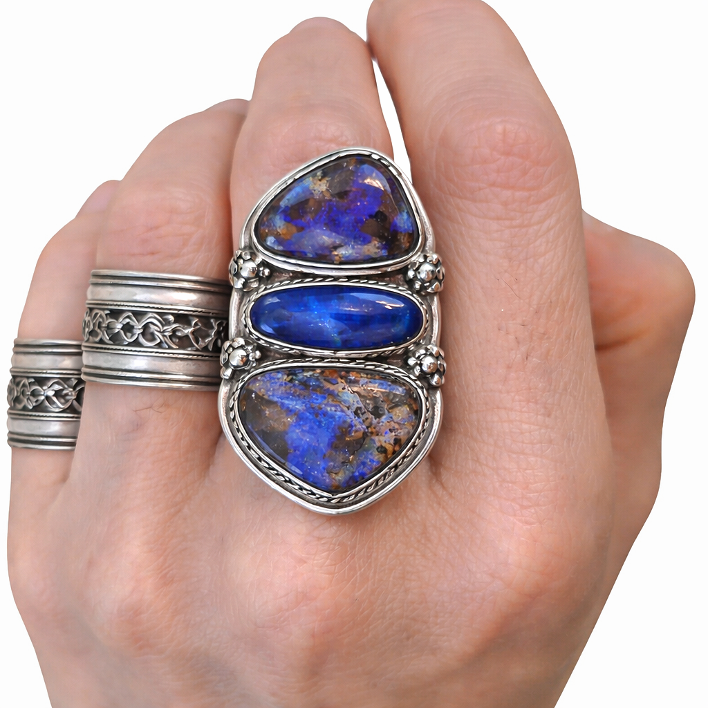 So this triple Turquoise beaut popped up in my archive memories this week... I don't have any Turquoise the right shape to make something similar but I spotted some Boulder Opal that would be perfect ! I have added a listing for this combo and design if you would like this made to order .. can be any size ring or a pendant.