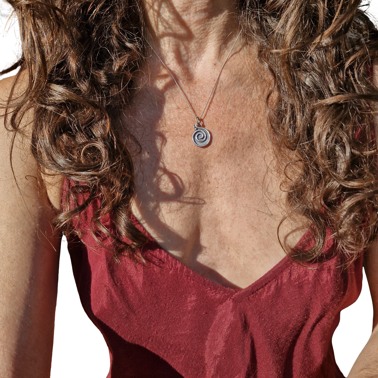 Mini spiral pendant.. perfect little piece for layering. Comes with light delicate sterling silver ball chain. I have some available ready to ship ... if this listing is sold out they will then be available made to order.