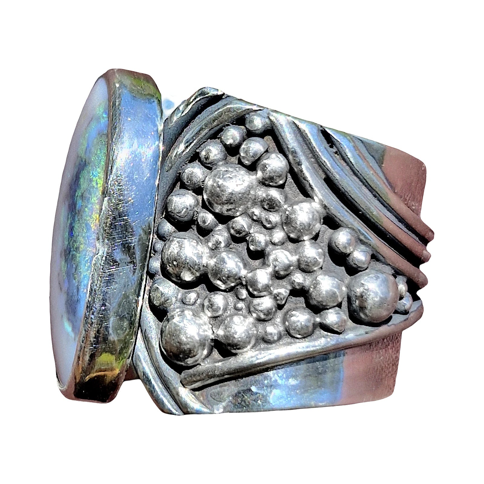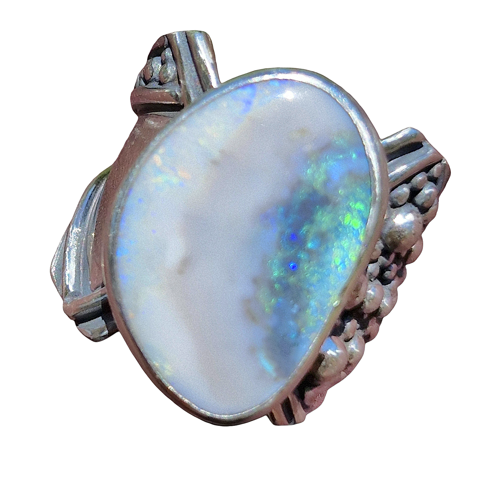 Finished with a super unique Lightning Ridge Opal that reminds me a magical snowy winter with its pale shades and bright blue green rainbow sparkles patch.q