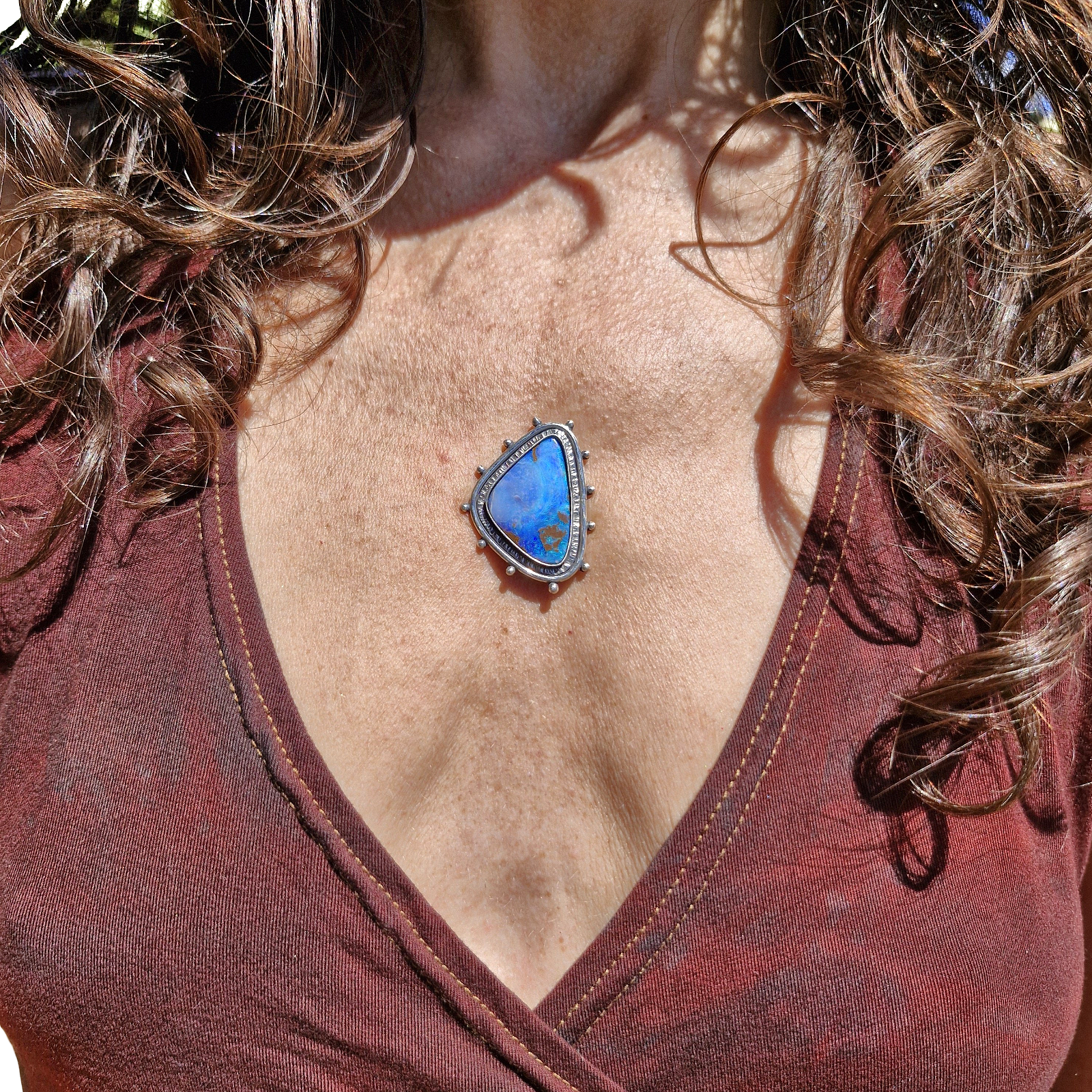 One of the purest blue Opals I have worked with ! Such a vivid pure sky blue... finished with smooth and textured borders and dots.
